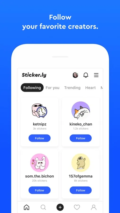 - Follow your favorite creators or artists to get new WA stickers instantly