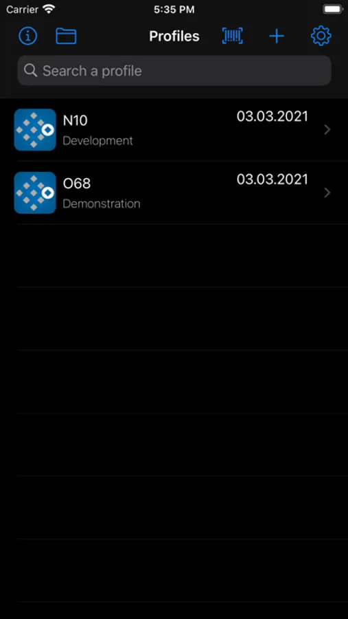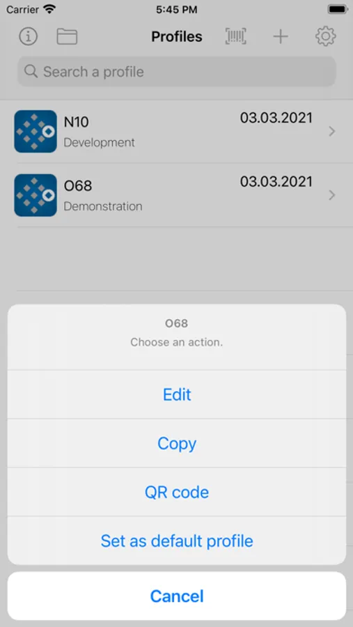 • Creating new profiles by scanning a profile QR code; the administrator password is not needed to do this.