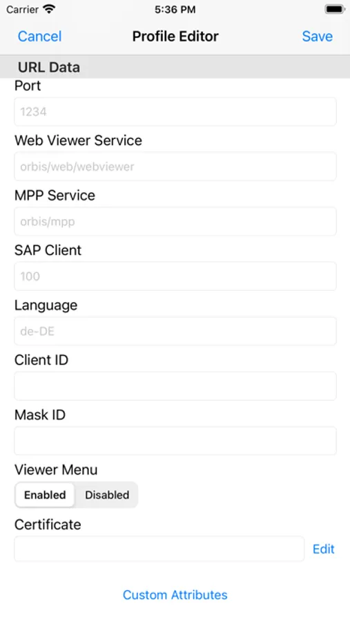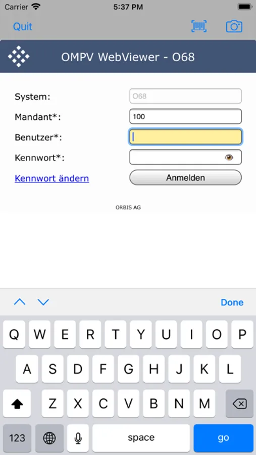 The SAP system connection data and the mobile application to be used are entered in the app’s configuration. You can then easily log in with your SAP user data on the iOS device.