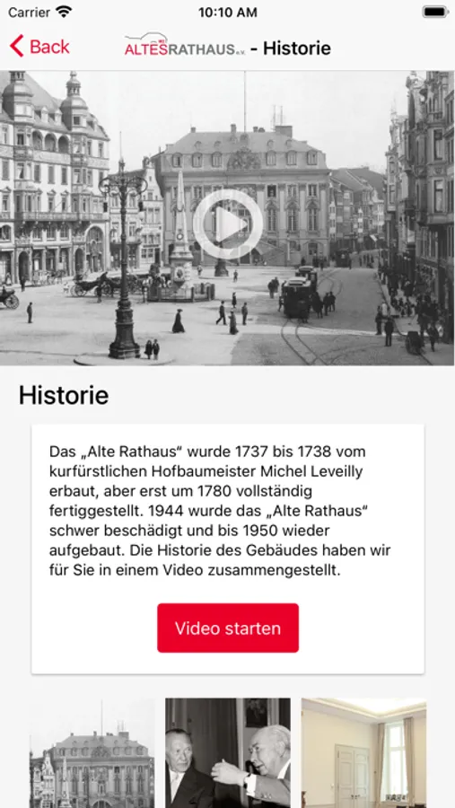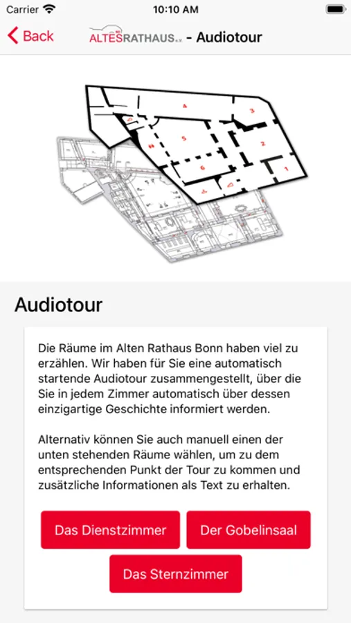 Das Alte Rathaus Bonn ist eines der bedeutendsten Bauwerke der Stadt Bonn und hat das politische Leben in der Zeit Bonns als Hauptstadt deutlich geprägt. Der Verein Altes Rathaus bietet mit dieser App die Möglichkeit, in die mehr als 300 Jahre alte Geschichte des Alten Rathaus Bonn einzusteigen und es in seinem heutigen Zustand kennen zu lernen