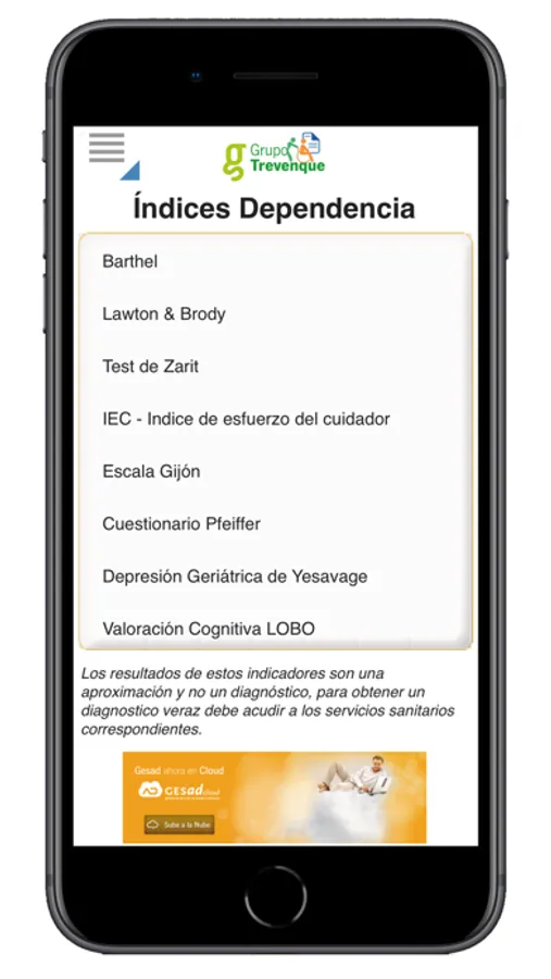 Índices Dependencia es la herramienta móvil que le permite calcular los principales valores funcionales, psicoafectivos y socio-familiares de los usuarios o pacientes de residencias, centros de día, ayuda domiciliaria, etc.