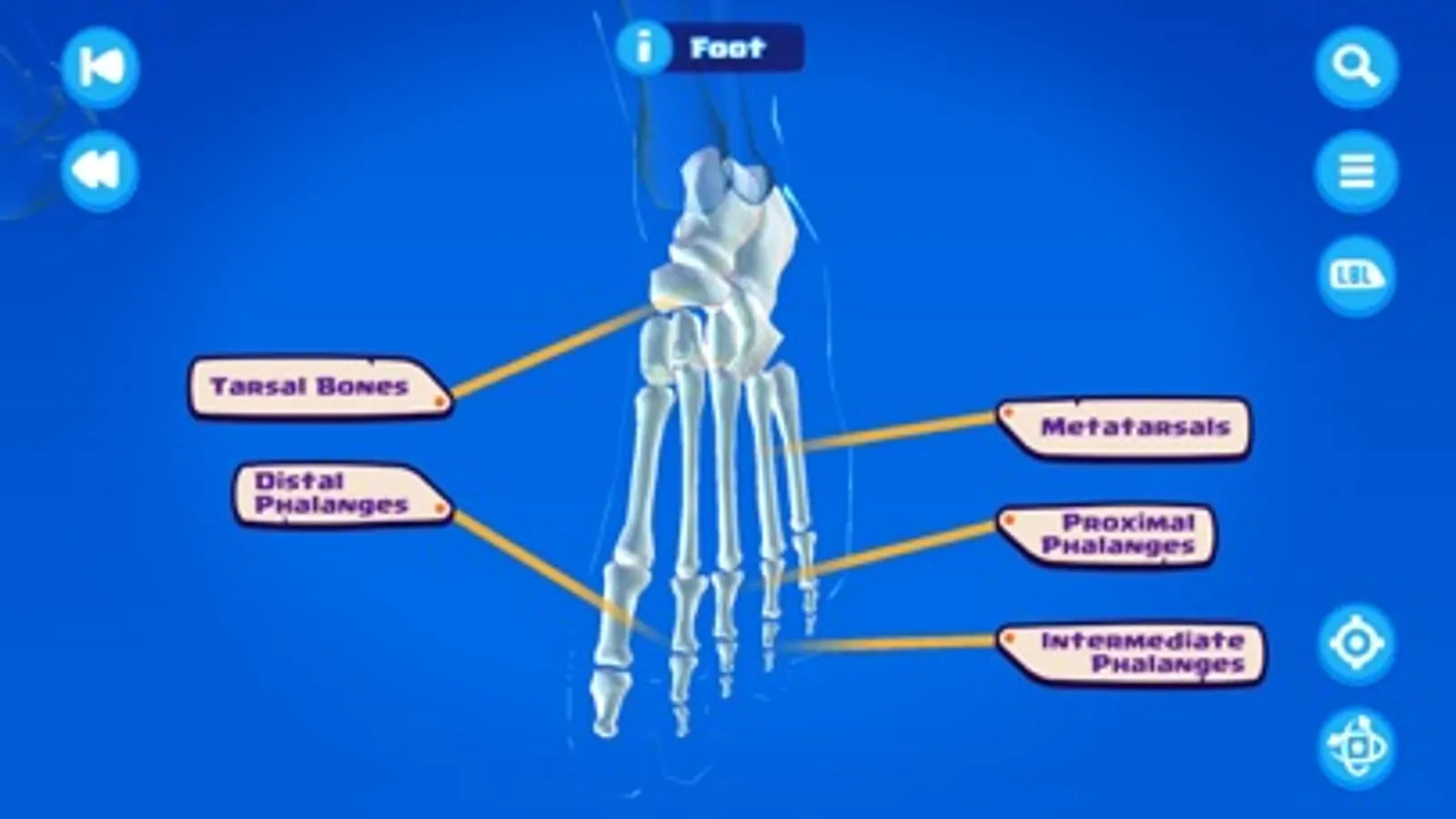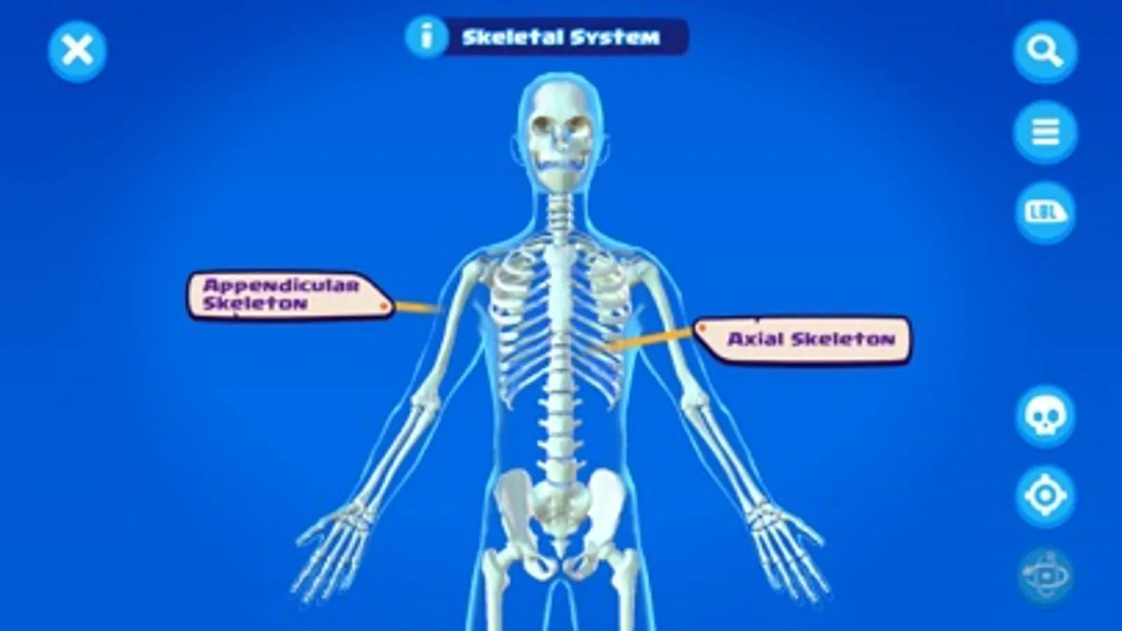 Explore - A visual 3D model of the human skeleton that let’s you find and learn about the bones in the body. Use your touchscreen to tap on bones to find out more. If you know the name of the bone, you can use the search feature to find it too. For Augmented Reality compatible devices, you can even place the skeleton in the real world!