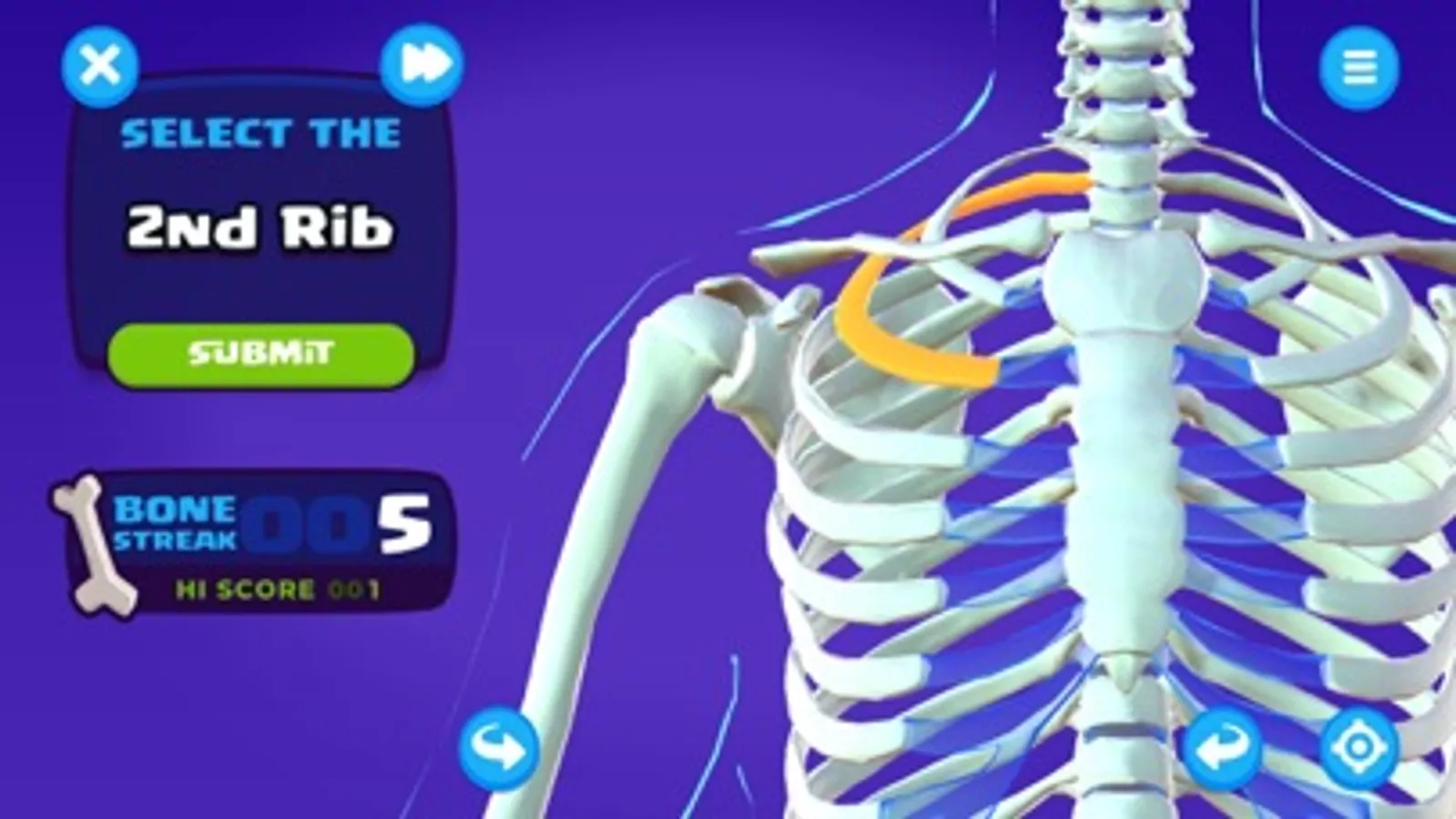 Bone Hunter - See how long of a streak you can build finding the correct bone. Test yourself on every bone in the body, or narrow it down to specific bone groups like the Hands, Legs, or Cranium. Also playable in Augmented Reality!