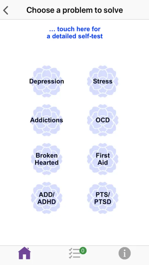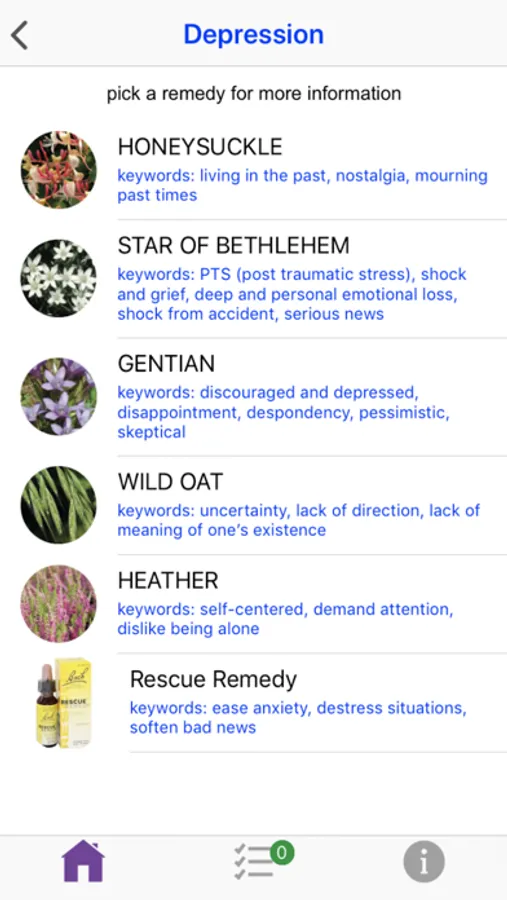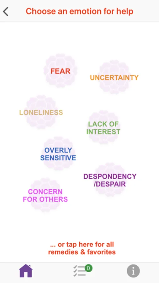 This app provides info on flower essence remedies for healing based on the work of Dr. Edward Bach. Two major paths are offered from the home page. You can pick to i) explore the Emotion path, or ii) address the Problem path.
