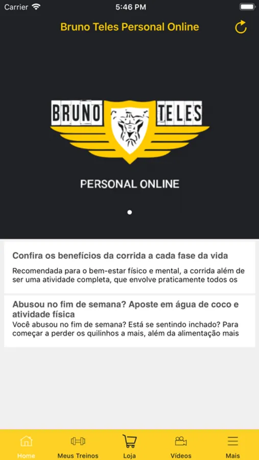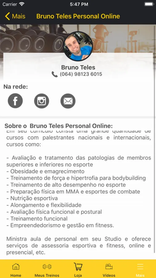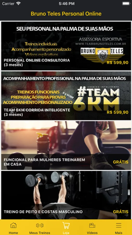 Através do aplicativo você vai ter acesso a diversos conteúdos como dicas de treino, vídeos, programação, e um canal de comunicação diferenciado com o Bruno Teles.