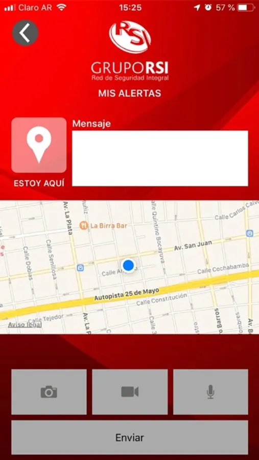 RSI Alerta le permite enviar un mensaje de emergencia que contendrá su posición satelital (si esta está disponible) para que lo puedan hallar fácilmente.