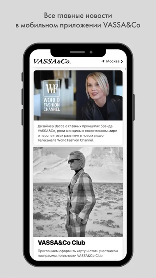 Установите мобильное приложение VASSA&Co и наслаждайтесь шопингом в любое время и в любом месте со всеми преимущества персонального магазина в вашем смартфоне: