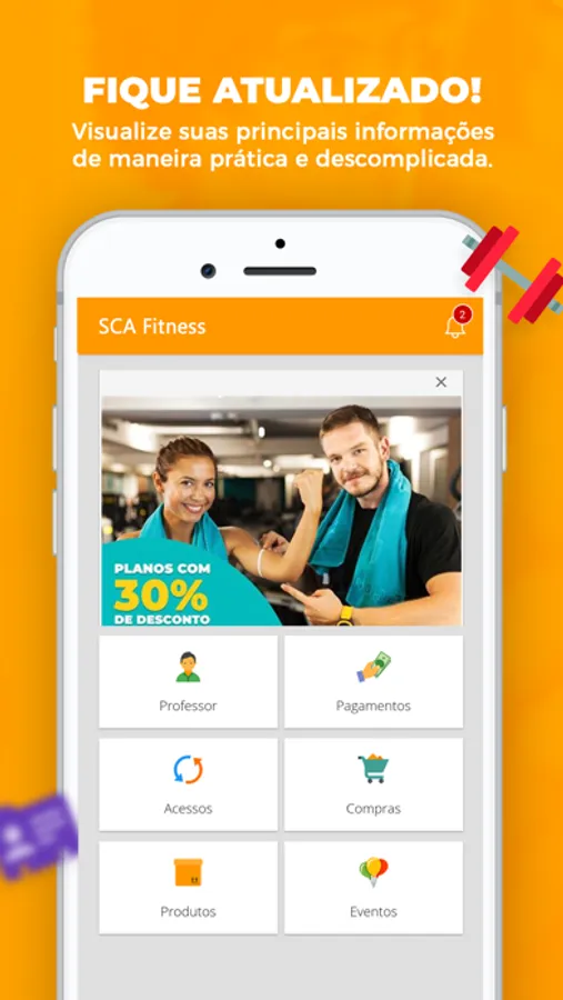 SCA Professor é um aplicativo disponibilizado para todos os professores das academias que utilizam o Sistema SCA Online, com as seguintes funcionalidades: