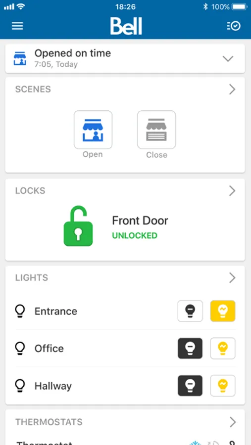The Bell Security and Automation app is your connection to your business, providing instant control of all system devices and features and real-time customizable notifications.