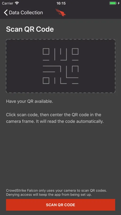 Please note that CrowdStrike Falcon is an enterprise application. In order to use the app, you must have a QR code provided by your organization’s IT team.