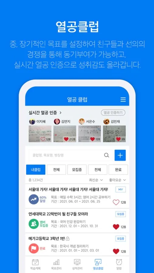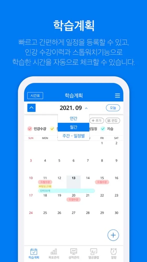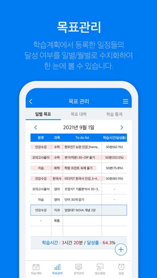인강수강, 목표관리, 성적관리부터 열공클럽, 알람까지