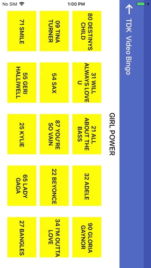 15 random boxes, each box will contain numbers & names of songs or singers, displayed on multiple phone screens - each phones screen will display a different permutation of numbers from 1 to 90. Any phone using the same app at the same time will have a different permutation - a desktop app will pick numbers and singer names or songs at random - if the boxes displayed on the smartphone have the same/identical information contained with in any of the 15 boxes - the person will tap that box and it will change colour so the person will know that particular number & song has been displayed on the desktop and is no longer needed to complete all the 15 boxes on the mobile device - the object of the game is to complete all 15 boxes on your mobile device before someone else completes their 15 boxes