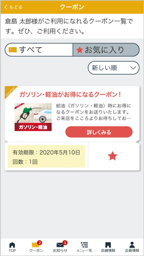 登録した店舗で実施中のキャンペーン情報や各種最新情報をお届けします。