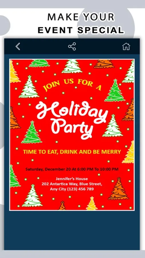 - Save your Invitation Cards and share on any social networking platform directly from the app.