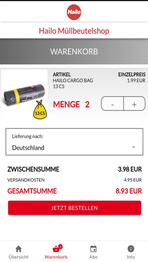 Sie können nicht nur schnell, einfach und unkompliziert Hailo Cargo Bags für Ihr Hailo Synchro System bestellen, sondern auch ein Abo einrichten, welches Sie in festgelegten Intervallen daran erinnert, neue Müllbeutel zu bestellen.