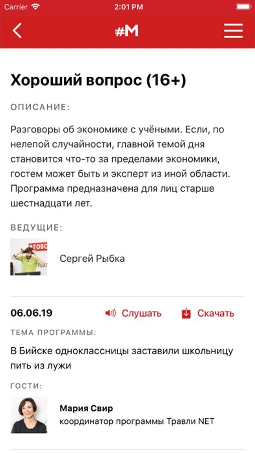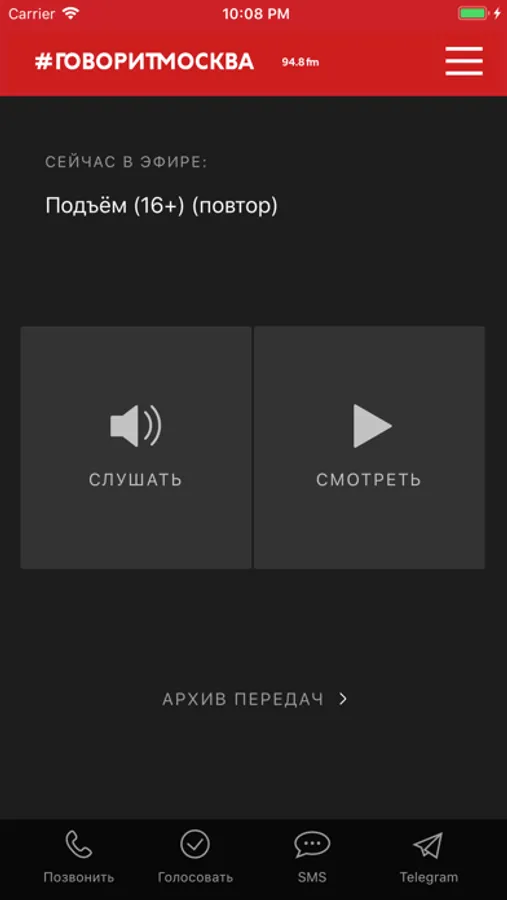 Наше приложение позволяет слушать и смотреть прямой эфир. Вы сможете проголосовать, написать СМС или позвонить в эфир. Также в приложении вы найдете записи программ.
