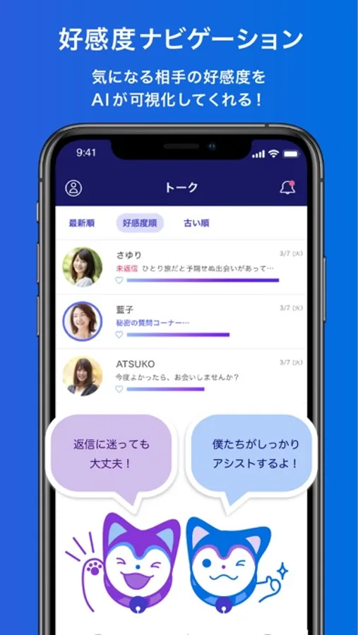 気になるあの人の好感度をAIが可視化。効果的に異性にアプローチすることができ、あなたの背中を押してくれます。