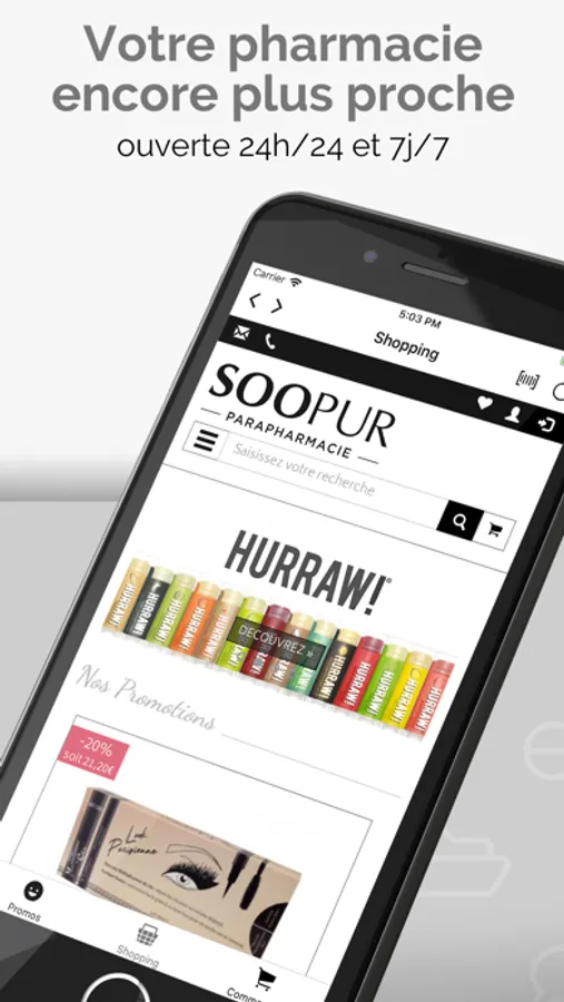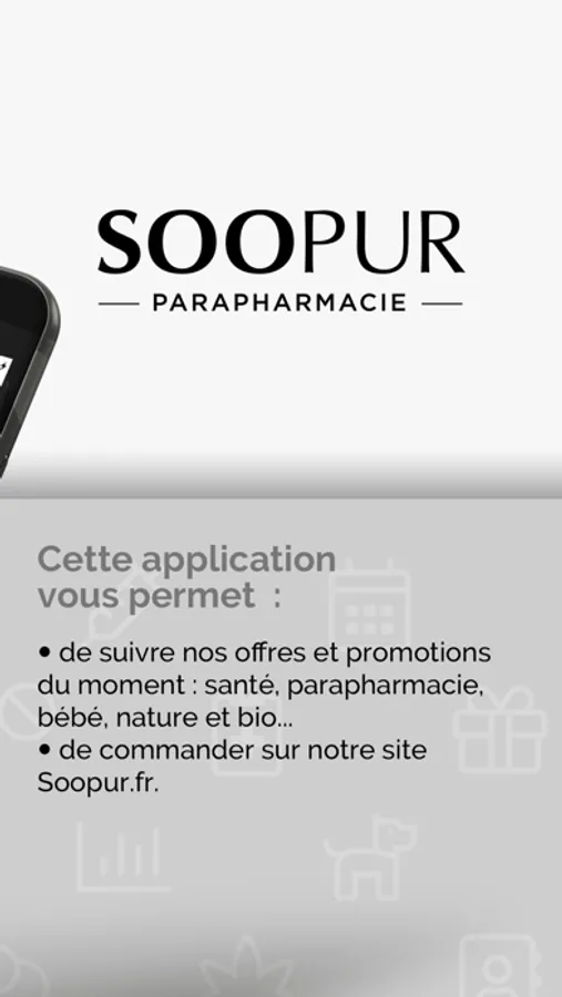 Retrouvez l'application SOOPUR, votre expert santé et parapharmacie.