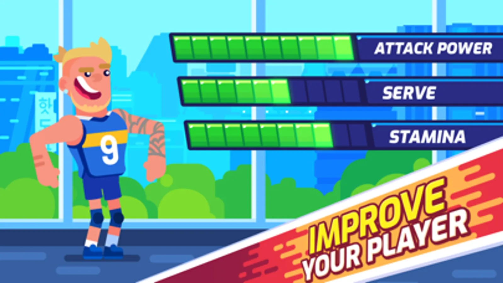 Develop your player's SKILLS – raise your stats across categories such as serve power and strength, stamina or attack!