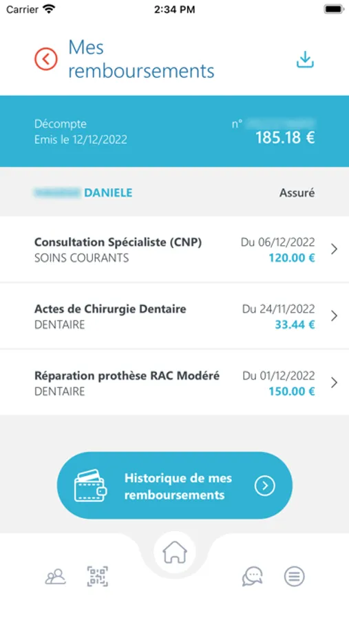 - Consultez le détail de vos derniers remboursements santé ainsi qu’un historique