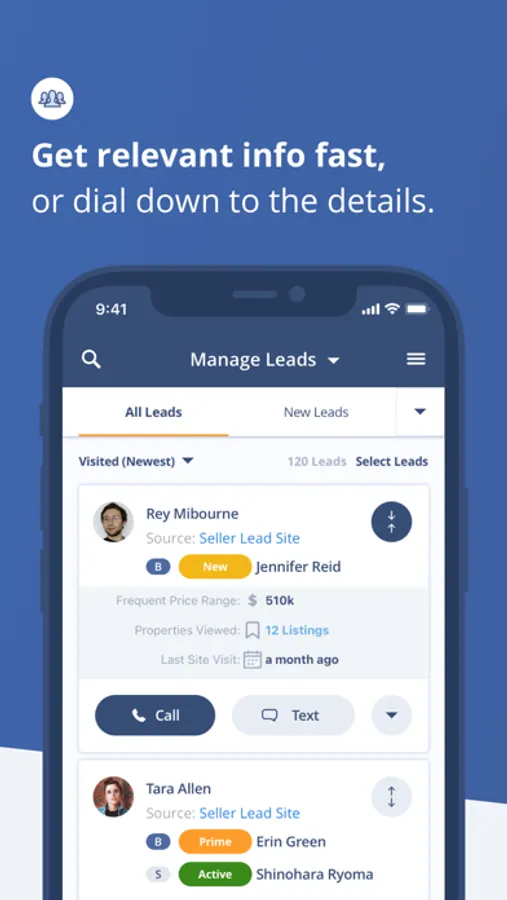 ** Get the Quick Context with Contextables. – Tap to reveal a bit more insight to your leads with lead contextables. You’ll see, when applicable, a lead’s short summary, recent search location, frequent price range, saved properties, properties viewed, and last site visit, or simply their registration date.