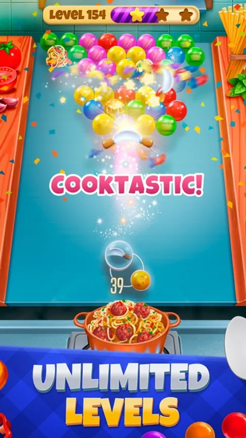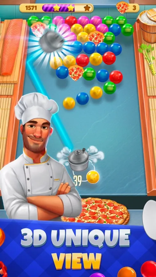 Best pop bubble shooter game! The first VISUAL 3D bubble shooter game: watch as the balls bounce down the board! Aim and blast bubble to unlock ingredients and travel the world cooking delicious dishes in exotic destinations.