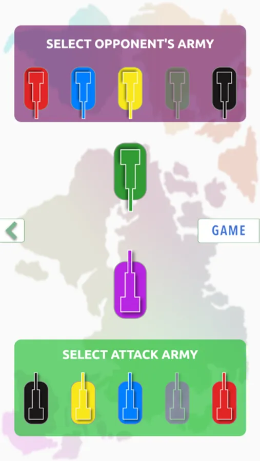 Army mode: Attacking player select the color of his army and the color of defender army. During the same session attack the attacker keeps the color of his own and change only the opponent if needed. When attack player change, just change the color of the attacker army tank.