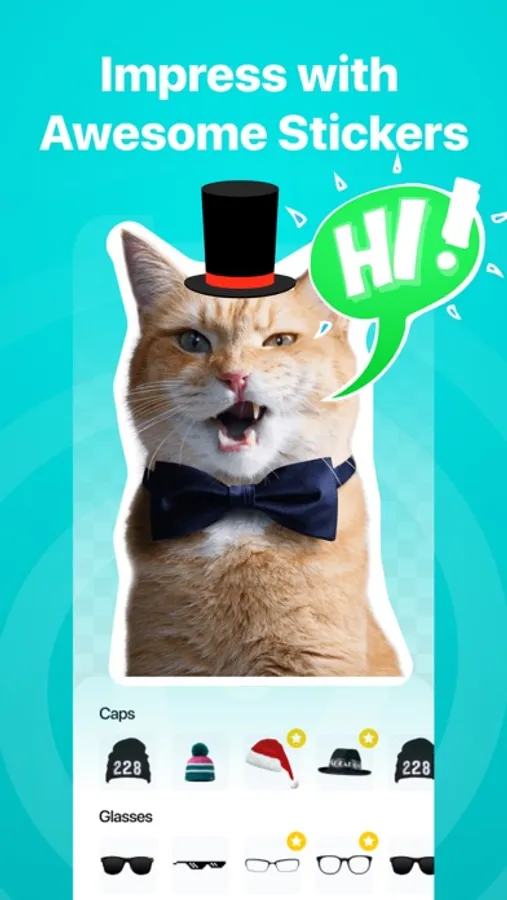Enhance your stickers with colorful BADGES, like Sunglasses, Comics Speech Bubbles, cute Hats & funny Moustache. Apply customized FONTS to add more emotions to your stickers!