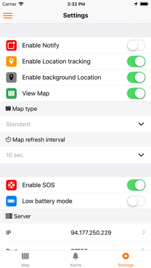 TRACK: track your position using your smartphone or tablet as a real GPS device and send your location to the main server at selected time intervals.