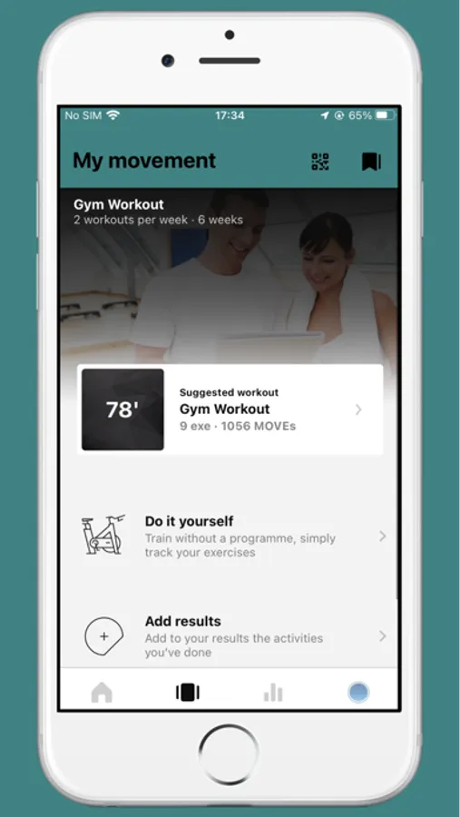 MY MOVEMENT: What you’ve chosen to do: here you will find your programme, classes you’ve booked, challenges you’ve joined and all the other activities you’ve chosen to do at your facility