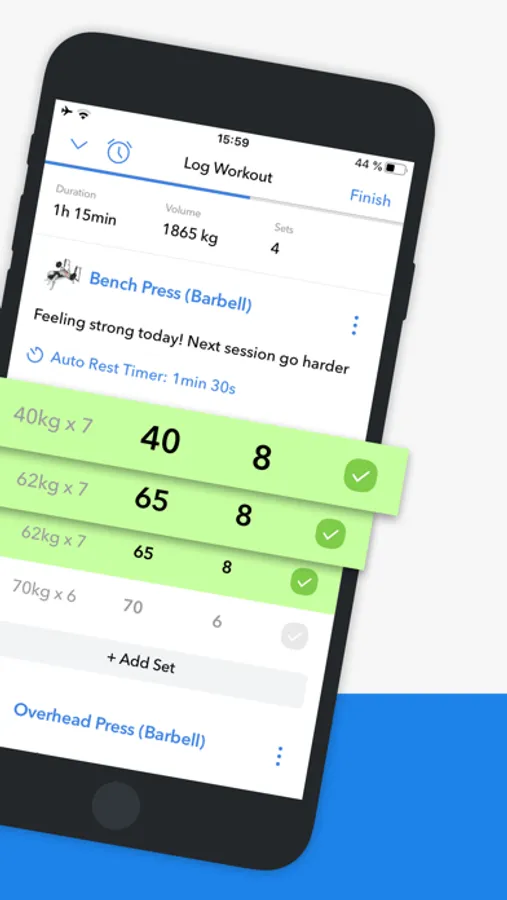 • Customize automatic rest timers for each exercise