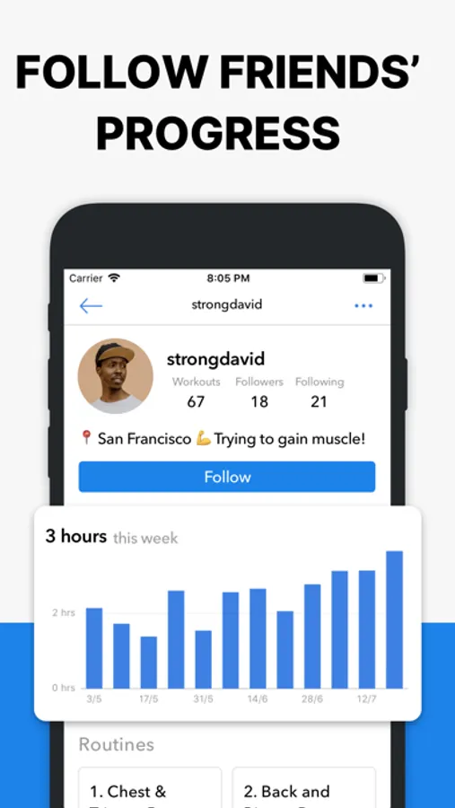 • Follow your friend's progress by following their lifts and copying their routines