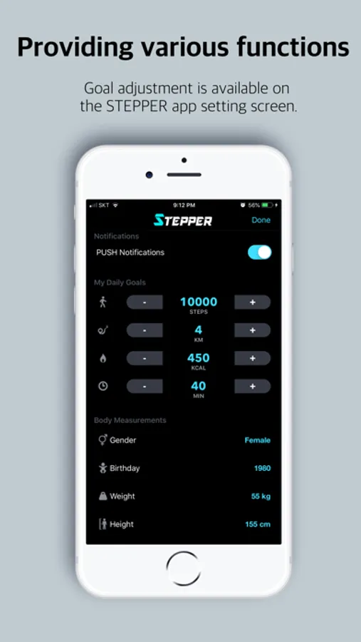 • Notification: Used to receive push messages of Stepper. (Selection)