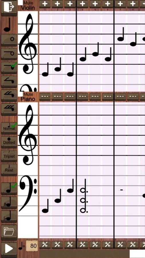 Create Music Sheet feature: You can create, save, open your music sheet with 2 instruments: Violin and Piano. Export it for playing or sharing to everyone.