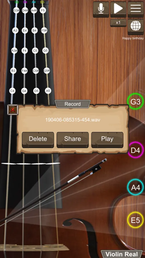 The Violin Real is 2 Violin type simulation app with Arco (using hand drag Violin bow) and Pizzicato (using hand touch) feature. Frequency range: G3 → A5#.
