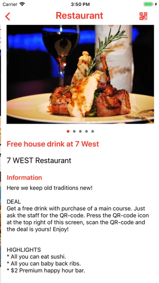 Get your free glass of house wine. Just ask the staff for the QR code.