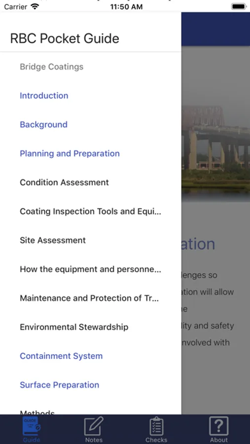 This app provides a better understanding of the process to remove and replace bridge coatings for the structural steel elements of bridges in service. The app describes how to plan and execute a coatings removal and replacement operation with an emphasis on the three primary activities of containment, surface preparation and painting. This app does not cover shop-applied coatings or spot-painting operations, however much of the information represents best practices for all bridge coating work.