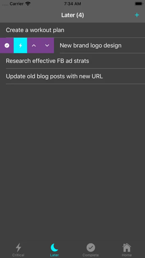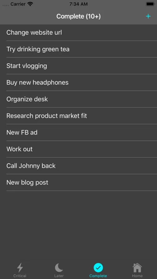 Each list shows only the top 10 tasks, that way you’ll never overload yourself!