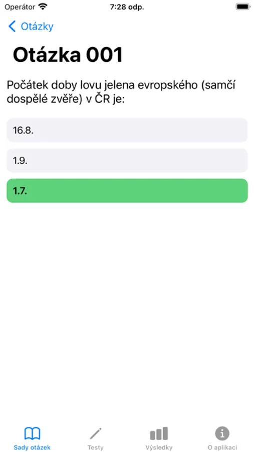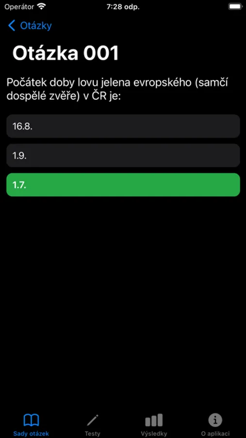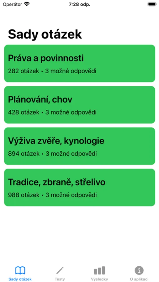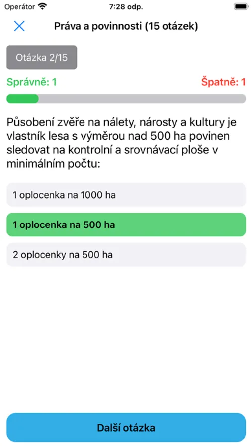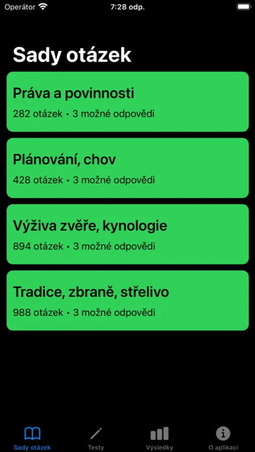 Jedná se o software pro žadatele o zkoušky mysliveckého hospodáře. Aplikace umožňuje uživateli nechat se opakovaně vyzkoušet z vybraných zkušebních předmětů, přičemž nabídne zvolený počet otázek pro každý předmět a otázky náhodně vybere z rozsáhlé databáze. Výsledky zkoušek a testů se automaticky ukládají a uživatel může snadno získat podrobnosti o svém odborném postupu a úrovni znalostí. Databáze čítá cca 2 600 otázek.