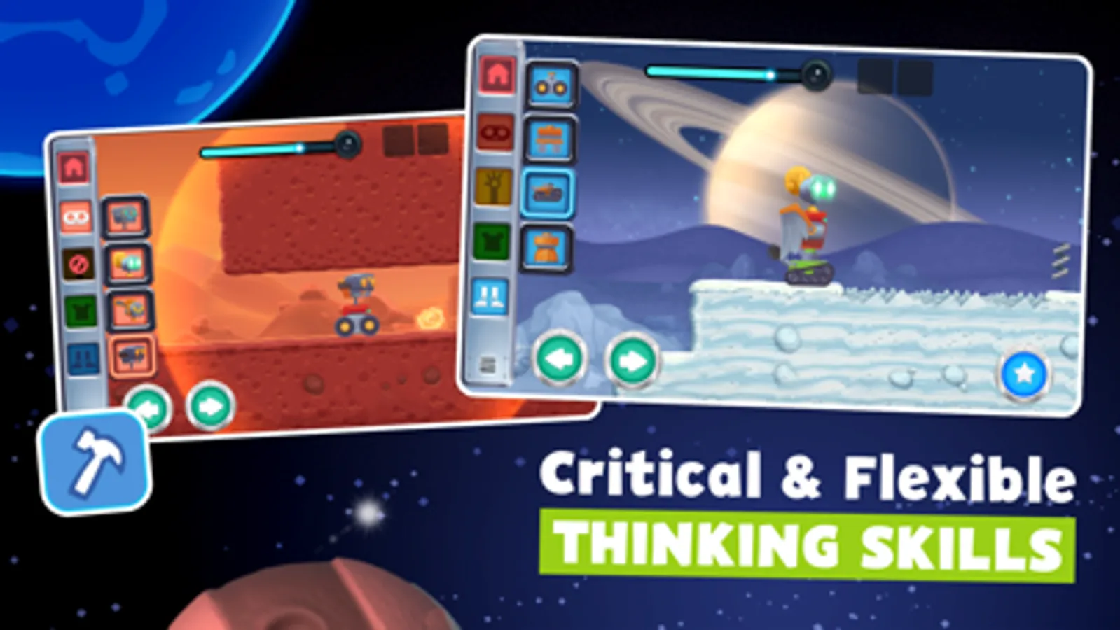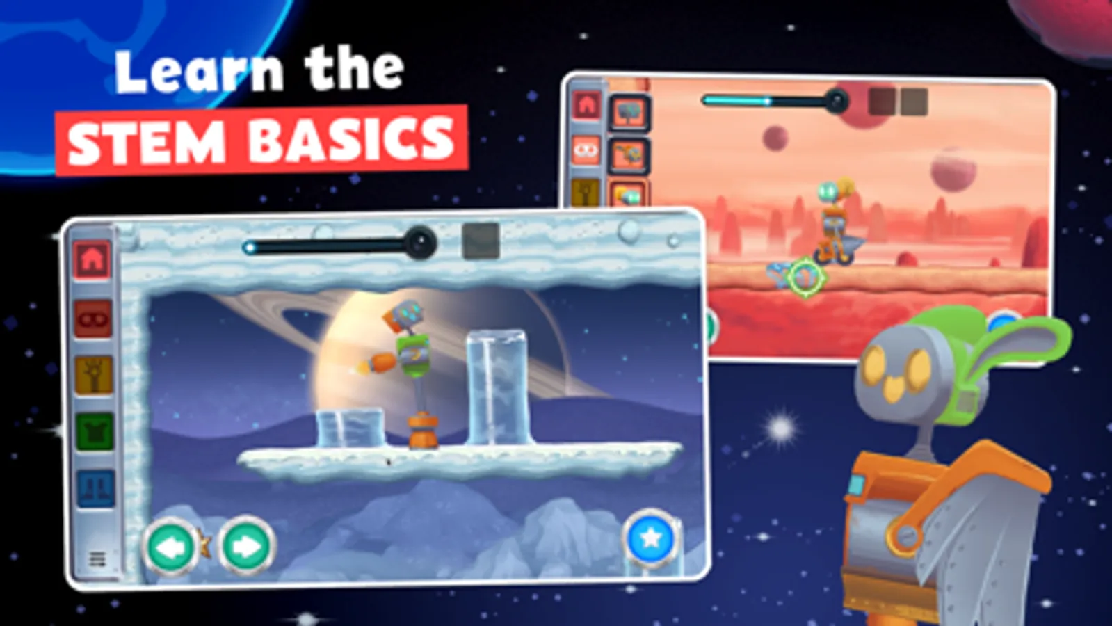 Each planet has a new challenge for your robot. Kids can build new parts and swap them around to find the best way to solve each level, learning critical thinking and problem-solving skills as they do.