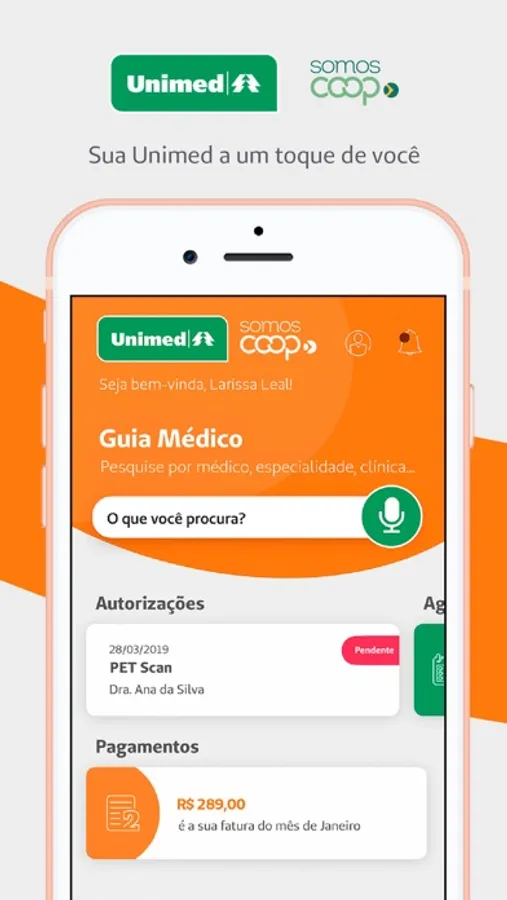 Na Unimed Cliente, você tem acesso ao Guia Médico Nacional com a praticidade do comando de voz, pode acessar a carteirinha virtual, os conteúdos de saúde e qualidade de vida do Viver Bem, além de vivenciar um novo relacionamento digital com a sua Unimed.