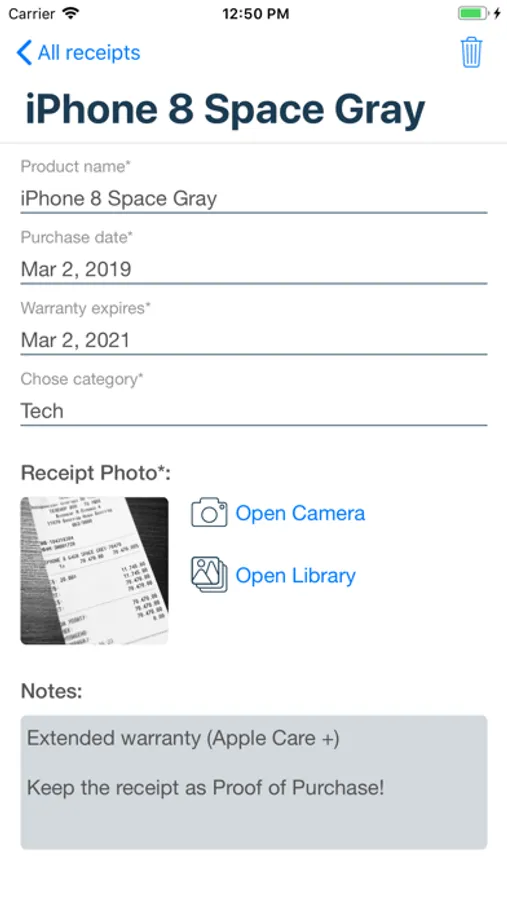 Keep Receipt lets you get rid of boxes full of disorganized and fading receipts while saving you a ton of time when it comes to searching for a particular receipt. Filter by category, name, or both. It even notifies you of expiring warranties.