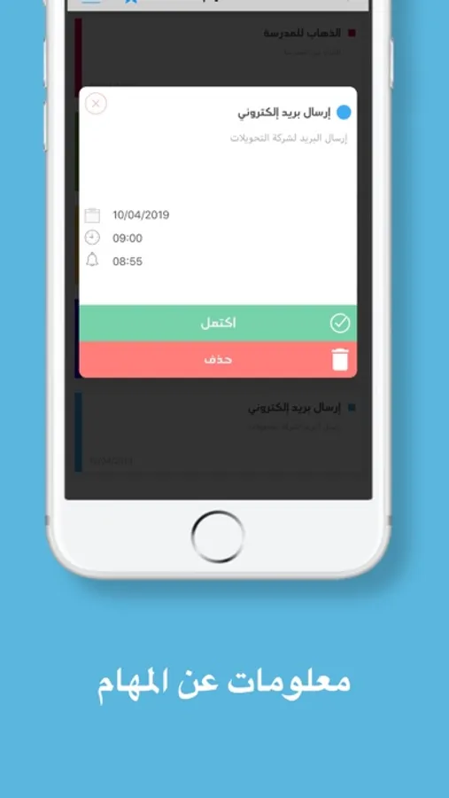 يعتبر تطبيق المهام من أفضل وأروع تطبيق لإدارة المهام اليومية بمختلف انواعها، ويتميز بتنبيهك في الوقت وأيضا يمكنك من متابعة جميع المهام المتبقية بالتاريخ والساعة،يمكنك تطبيق ادارة المهام من تجنب نسيان الاعمال المهمة.