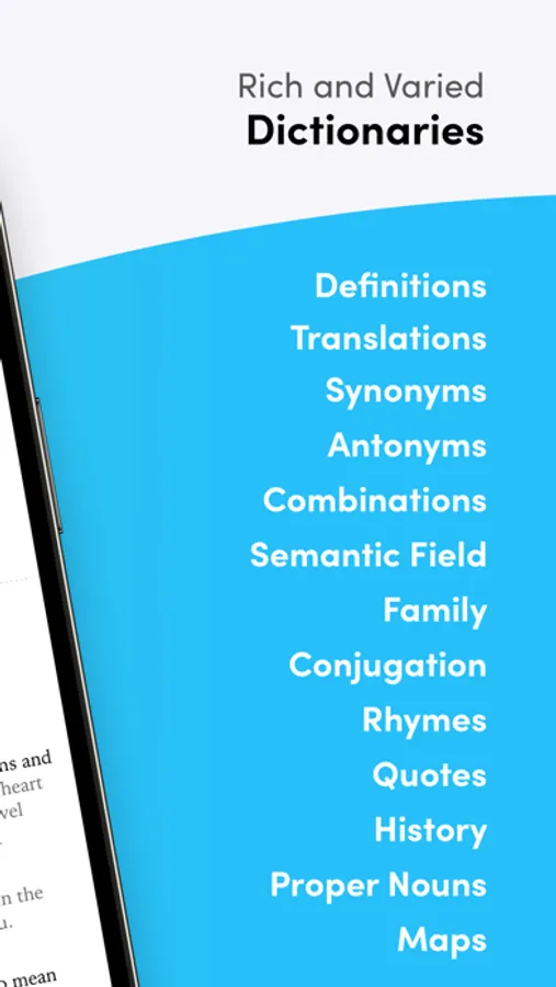 Antidote Mobile provides rich definitions, abundant synonyms, massive word combinations and much more, in an elegant and efficient interface. Use powerful search engines to find rhymes, anagrams, and other links between words, even with wildcards. Listen to words in all their forms in 4 accents. Display 2.7 million translations of words and expressions, or hide them to work in a single language.