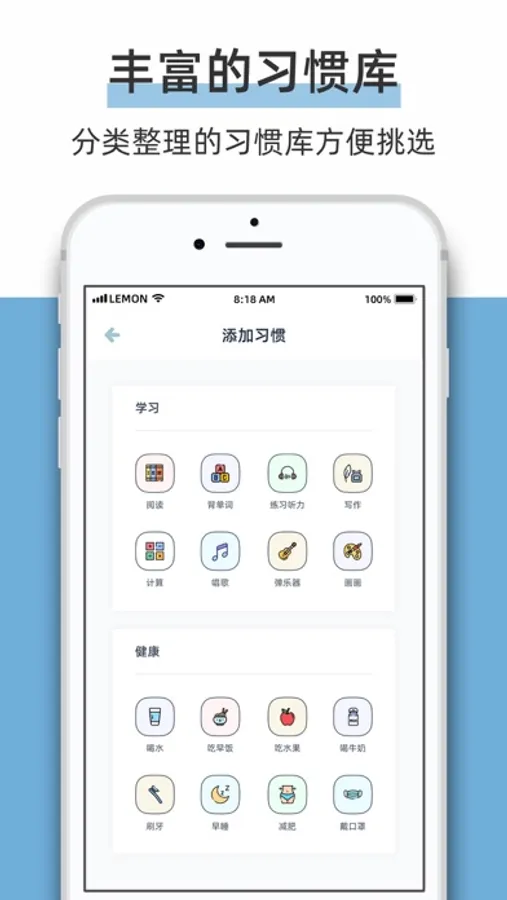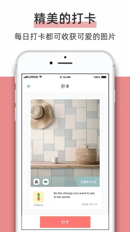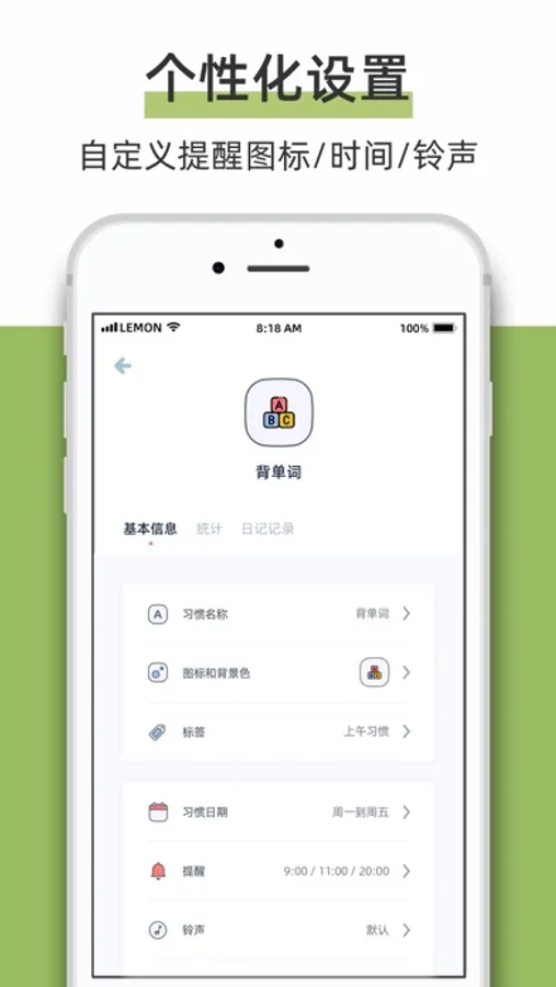柠檬点点, 一款清新可爱的小小日常习惯养成工具, 可以帮助您养成规律的睡眠、喝水、减肥、背单词、练习阅读和听力等小习惯,并提供提醒和打卡功能,确保您在设定的时间完成习惯任务。