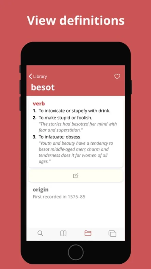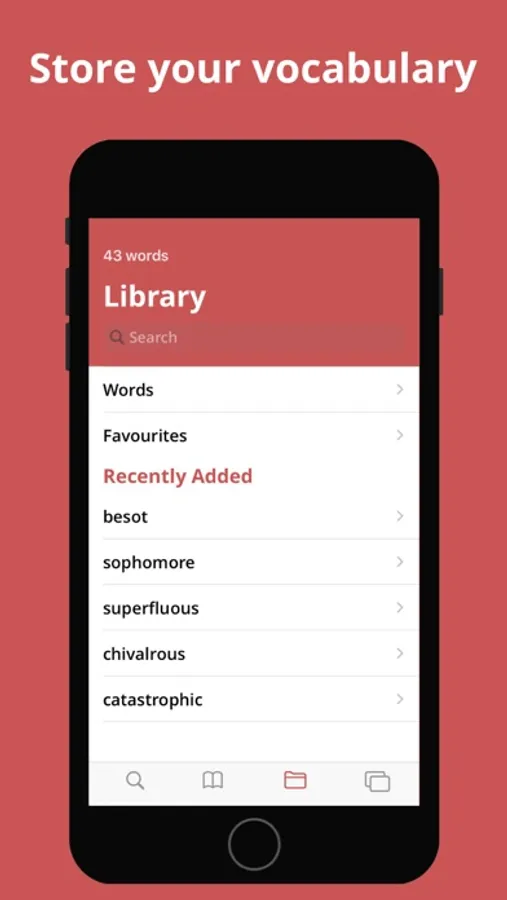 - Create your own list of words by adding searched words into your library.