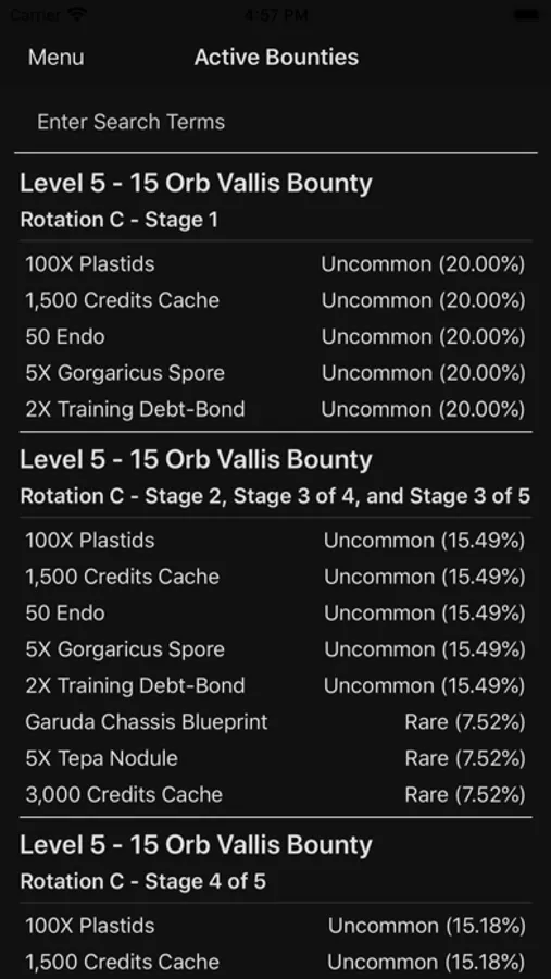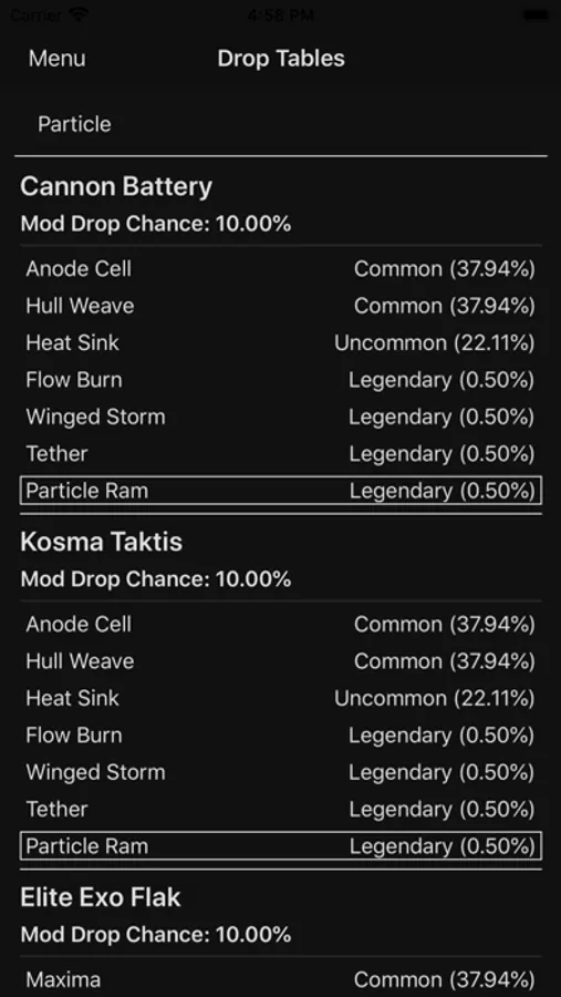 Special Note: I don't know of a published drop table for platforms other than PC, so that is the only one the app parses
