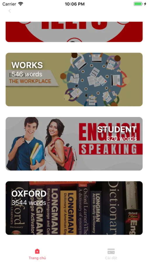 2. Học từ vựng tiếng anh, nhiều bộ từ vựng luyện thi IELTS, TOEFL, TOIEC, văn phòng, công sở ...