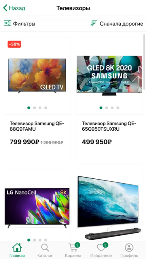 - любимым товарам в избранном