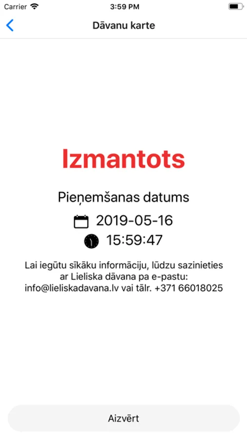 • Pieņemt dāvanu čekus/kartes/komplektus;